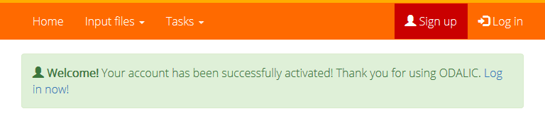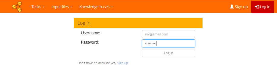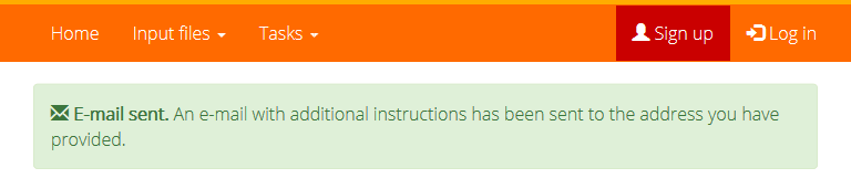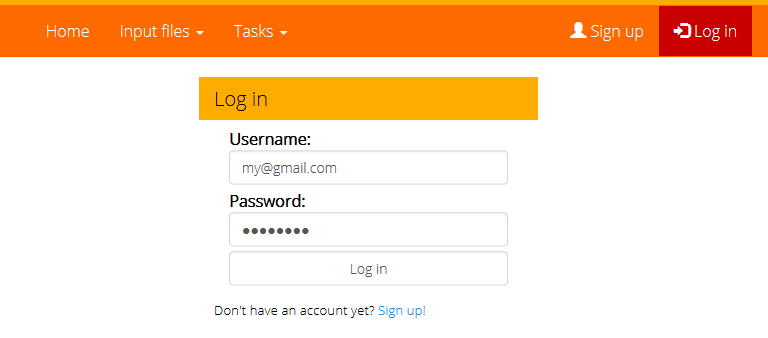 Before the first use of the application you must log in. When you are not logged in, you will be automatically redirected to the login page from any other content page (Tasks, Files, etc.). When you don't have an account yet, you must sign up. Please note that the e-mail confirmations can be turned off by the server administrator. In that case the user is logged in immediately when signing up.