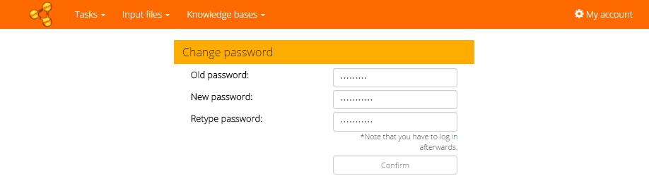 From the My account page you can also change your password. The password change must be also confirmed by the link sent to your e-mail.